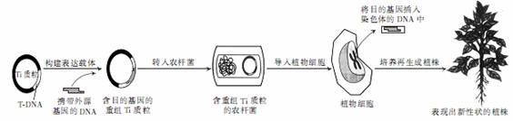 在植物基因工程中,用土壤农杆菌中的Ti质粒作为运载体,把目的基因导入Ti质粒上的T?DNA片段中,再将重组的T?DNA插入植物细胞的染色体DNA中(如图)。请回答: