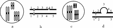 某些类型的染色体结构和数目的变异,可通过对细胞有丝分裂中期或减数第一次分裂时期的观察来识别。a、b、c、d为某些生物减数第一次分裂时期染色体变异的模式图,它们依次属于( )