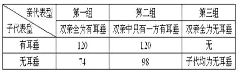 人的耳朵有的有耳垂,有的无耳垂。某医学小组调查了人群中有耳垂性状和无耳垂性状的遗传情况,统计情况如下表:(控制耳垂的基因用 A 、 a 表示)