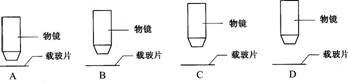 用显微镜的一个目镜分别与4个不同倍数的物镜组合来观察藓类叶装片,当成像清晰时,每一物镜与载玻片的距离如下图所示。如果载玻片位置不变,用哪一物镜在视野中看到的细胞最多( )
