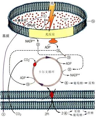 13.右图是某些高等植物光合作用过程示意图,下列与此有关的叙述正确的是