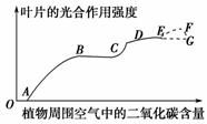 17.下图表示叶片的光合作用强度与植物周围空气中二氧化碳含量的关系。图示中,CE段是增大了光照强度后测得的曲线。下列有关叙述中,正确的是