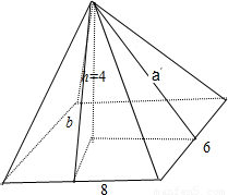 【答案】分析:根据已知的三视图可判断出该几何体是一个四棱锥,利用已知数据,结合体积,表面积公式求解