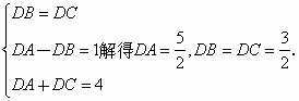△ABC中,AB=2,AC=4,线段CB的垂直平分线交线段AC于点D,DA-DB=1.求BC的长及![]()