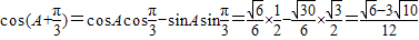解答:解:(Ⅰ)∵锐角B满足sinB=,∴