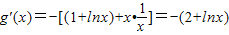 设g(x)=-x(1+lnx),即a=g(x)