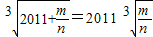 【答案】分析:根据题意,分析所给的等式,可以归纳得到=n×,进而在中,比较可得m、n的值,代入中,可得答案.