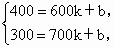 (1) ÓÉͼÏóÖª£¬µ±x=600ʱ£¬y=400£»µ±x=700ʱ£¬y=300£¬´úÈëy=kx£«bÖУ¬µÃ