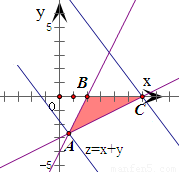 点评:本题给出二元一次不等式组,求目标函数z=x+y的最大值,着重考查了二元一次不等式组表示的平面区域和简单的线性规划等知识,属于基础题.