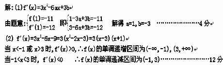 设函数f(x)=x3-3ax2+3bx的图像与直线12x+y-1=0相切于点(1,-11)。