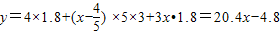 (2012•西区一模)某市居民自来水收费标准如下:每户每月用水不超过4吨时,每吨收费1.8元,当用水超过4吨时,超过部分每吨收费3元.某月甲乙两户共交水费y元,已知甲、乙两户用水量分别为5x,4x(吨)