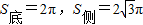 (如图)在底面半径为2母线长为4的圆锥中内接一个高为的圆柱,求圆柱的表面积