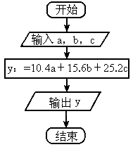 春节到了,糖果店的售货员忙极了.请你设计一个算法,帮助售货员算账.已知水果糖每千克10.4元,奶糖每千克15.6元,果仁巧克力每千克25.2元,那么依次购买这三种糖果a、b、c千克,应收取多少元?