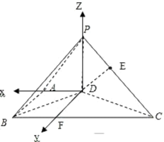 (2)在底面ABCD内过D作直线DF∥AB,交BC于F,分别以DA、DF、DP为x、y、z轴建立如图空间坐标系,