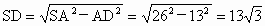 一个三棱锥三条侧棱长都是26,底面三角形三边长分别是10,24,26.求此三棱锥的高和全面积.