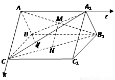 如图,在直三棱柱ABC-A1B1C1中,点M是A1B的中点,点N是B1C的中点,连接MN