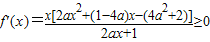 ②当a≠0时,由函数f(x)的定义域可知,必须有2ax+1>0对x≥3恒成立,故只能a>0,