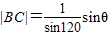 已知△ABC中,,∠ABC=120°,∠BAC=θ,记f(θ)=