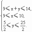 某人上午7时乘摩托艇以匀速v海里/小时(4≤v≤20)从A港出发到距50海里的B港去,然后乘汽车以匀速w千米/小时(30≤w≤100)自B港向距300千米的C市驶去.应该在同一天下午4点至9点到达C市.设汽车、摩托艇所需要的时间分别是x、y小时.