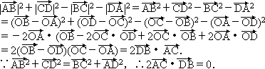 证明:若四边形两组对边的平方和相等,则其两条对角线互相垂直.