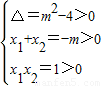 命题p:方程x2+mx+1=0有两个不等的正实数根?,命题q:方程4x2+4(m+2)x+1=0无实数根?△<0.