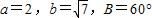 在△ABC中,角A、B、C所对的边分别为a、b、c,已知a=2,,B=60°.