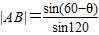已知△ABC中,,∠ABC=120°,∠BAC=θ,记f(θ)=
