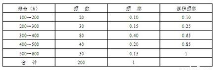 | 寿命(h) | 频数 | 频率 |