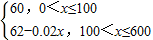 分析:(1)根据题意,函数为分段函数,当0<x≤100时,p=60;当100<x≤600时,p=60-(x-100)×0.02=62-0.02x.