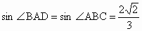 ABC中,AB=AC=3,BC=2,∠ABC的平分线交BC的平行线于D,求△ABD的面积.科目:高中数学 来源:2012-2013学年山东省淄博一中高一上学期期末考试数学试卷(带解析) 题型:单选题