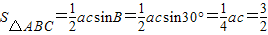 又∵△ABC的面积为,∠B=30°,