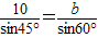 △ABC中,A=45°,B=60°,a=10,则b等于( )