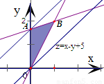 【答案】分析:作出题中不等式组表示的平面区域,得如图的△0AB及其内部,再将目标函数z=x-y+5对应的直线进行平移,可得当x=y=0时,目标函数取得最大值5.