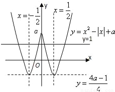 【答案】分析:在同一直角坐标系内画出直线y=1与曲线y=x2-|x|+a的图象,观察求解.