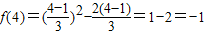 方法2:由f(3x+1)=x2-2x得f(4)=f(3×1+1)=12-2×1=1-2=-1.