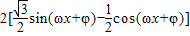 【答案】分析:(Ⅰ)先用两角和公式对函数f(x)的表达式化简得f(x)=2sin(ωx+φ-),利用偶函数的性质即f(x)=f(-x)求得ω,进而求出f(x)的表达式,把x=代入即可.