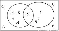 由韦恩图可知A={2,3,5,7},B{1,2,9}.