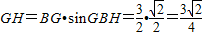 在Rt△BGH中,∠GBH=45°,BG=AB+AG=1+=