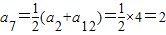 解答:解:因为数列{an}为等差数列,由a2+a12=4,所以