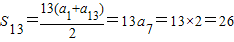 【答案】分析:由等差数列的性质,结合a2+a12=4可求a7,则数列的前13项的和为13a7