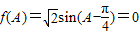 因为0<A<π,所以