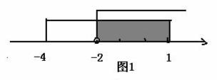 A、[-4,+∞) B、(-2, +∞) C、[-4,1] D、(-2,1]