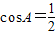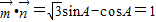 在锐角△ABC中,=(sinA,cosA),=(,-1),=1.