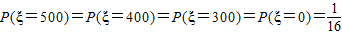 某公司为庆祝元旦举办了一个抽奖活动,现场准备的抽奖箱里放置了分别标有数字1000、800﹑600、0的四个球(球的大小相同).参与者随机从抽奖箱里摸取一球(取后即放回),公司即赠送与此球上所标数字等额的奖金(元),并规定摸到标有数字0的球时可以再摸一次﹐但是所得奖金减半(若再摸到标有数字0的球就没有第三次摸球机会),求一个参与抽奖活动的人可得奖金的期望值是多少元.