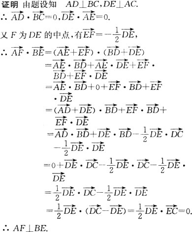 如下图,在△ABC中,AB=AC,D为BC的中点,DE⊥AC,E为垂足,F是DE的中点.求证:AF⊥BE.