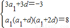 已知等差数列{an}前三项的和为-3,前三项的积为8.