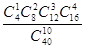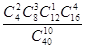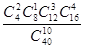 袋中有40个小球,其中红色球16个、蓝色球12个,白色球8个,黄色球4个,从中随机抽取10个球作成一个样本,则这个样本恰好是按分层抽样方法得到的概率为( )