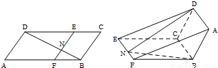 (Ⅱ)求折后直线DN与直线BF所成角的余弦值;