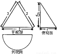 某几何体的三视图如图,其中府视图是半个圆,则该几何体的表面积为( )