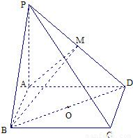 如图,在四棱锥P-ABCD中,底面ABCD是矩形,PA⊥平面ABCD,PA=AD=4,AB=2,以BD的中点O为球心、BD为直径的球面交PD于点M,